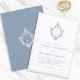 Dusty Blue Crest Monogram Formal Elegant Wedding Invitation