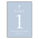 Dusty Blue Cross Boy Baptism Table Number Card