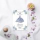 Elegant dusty blue gown, floral 15th birthday party invitations.
