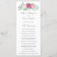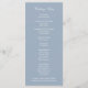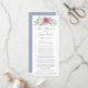 Romantic wedding program with a flower garland consisting of pastel pink and mauve roses. Your ceremony events are on the front and your wedding party is on the back over a dusty blue background. This floral design is great for a celebration in the spring.