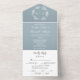 Dusty Blue, eucalyptus, elegant, rustic, modern folded marriage, Wedding all in one invitations. Trifold, budget set. You can personalized it with your own details.