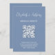 This minimalist qr code wedding website invitation features an elegant handwritten script on a dusty blue background. For details on your wedding website and rsvp online. The color code of this dusty blue tone is #7891B2. In case, the designer of your wedding website needs it.