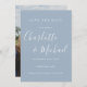 Dusty Blue Elegant Signature Script Photo Save The Date