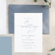 Plain white envelopes are included with paper invitations and will come to fit the invitation size you select. If you don’t need the envelopes, you may choose to not receive them by selecting the dropdown below "Envelopes" and choosing "None." If you’d like to have a design on your envelopes, you can browse all of these available envelopes to find the design that complements your Dusty Blue Elegant Simple Wedding Invitations.