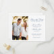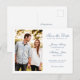 Elegant Minimal Wedding Save The Date Invitation Postcard features a stylish script font with a dusty blue color theme. This piece of wedding stationery is ready for you to customize with your own photo and the details of your event. Change font styles or colors and make it your own, or leave the design as you see here. Part of an ever-growing range of wedding stationery, please browse the Monogram and Floral Crest Wedding Suite for matching products.