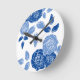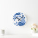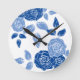 Dusty Blue Elegant White Gray Floral Simple Round Clock