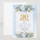 Dusty Blue Eucalyptus Gold 90th Birthday Milestone Invitation
