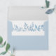 Simple, dusty blue envelope with the address printed on the back flap features dusty blue eucalyptus leaves liner inside the envelope. Personalize with your details with the easy to edit template featuring a romantic script font and modern sans serif font.