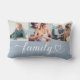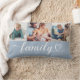 Soft dusty blue frames the Family heart script beneath a row of three personalized photo panels on this elegant lumbar pillow. The calming blue tone adds a serene, coastal-inspired touch to any living room or bedroom. Upload your favorite family photos to create a beautiful keepsake or gift for any occasion.