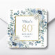 Dusty Blue Floral 80th Birthday Favor Square Sticker