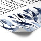 Dusty blue watercolor floral design contains many shades of blue from dark indigo blue, to light pale blue. Please find your seat is written in bold text and the wedding couple names are written in a fancy and bold script font.