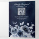 Dusty Blue Floral All in One QR Code Navy Wedding Tri-Fold Invitation