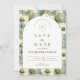 Dusty Blue Floral Arch Garden Wedding Save The Date