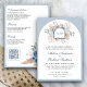 Dusty Blue Floral Boho Pampas QR Code Wedding Invitation