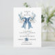 Dusty Blue Floral Bow Save the Date Wedding Card