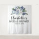 A large dusty blue floral bouquet creates a pretty backdrop for your bridal shower photographs. Three lines of text are available for you to personalize.