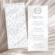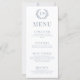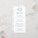 Enhance the charm of your wedding reception with these sophisticated and stylish dusty blue wedding menu cards. Decorated with delicate blue flower blossoms and showcasing a timeless floral wreath embellished with the bride and groom's monogram.