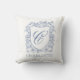 Dusty Blue Floral Crest Monogram Name Throw Pillow