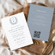 Dusty Blue Floral Crest Monogram Wedding QR Code Invitation