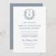 Dusty Blue Floral Crest Monogram Wedding QR Code Invitation