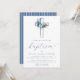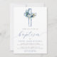 Dusty Blue Floral Cross Baby Baptism Invitation