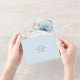Dusty Blue Floral Gold is a particularly pretty and ethereal color combination. This version has floral garland across the top of the invitation. Reverses to pale ice blue tint. All in one invitation is perfect for a simple and elegant summer wedding.
