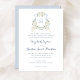 Dusty Blue Floral Greenery Monogram Crest Wedding Invitation