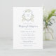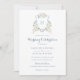 Dusty Blue Floral Greenery Monogram Crest Wedding Invitation