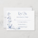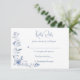 Dusty blue floral greenery ribbon elegant wedding RSVP card
