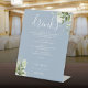 Dusty Blue Floral Greenery Wedding Drinks Menu Pedestal Sign