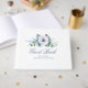 Dusty blue thistle, anemone, eucalyptus greenery modern wedding guest books