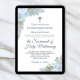 Dusty Blue Floral Modern Catholic QR Code Wedding Invitation