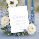 Dusty blue wedding details card with a refined watercolor monogram and timeless serif fonts. Coordinates beautifully with any modern or classic wedding theme.