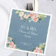 Rustic typography script Mr and Mrs wedding custom paper napkins featuring beautiful botanical flowers with greenery on a dusty blue chalkboard style background. Ideal for your spring summer elegant rustic garden outdoor backyard or farmhouse themed weddings, woes renewals, or couple's anniversaries.