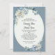 Dusty Blue Floral Oval Frame Wedding Invitation
