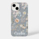 Dusty Blue Floral Personalized iPhone Case