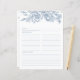 This Elegant Dusty Blue Floral Bridal Shower Recipe Page is elegant, modern, chic, and charming - perfect for a garden, botanical, rustic, romantic, floral, formal or vintage wedding. Its exquisite combination of graceful dusty blue roses and wispy foliage is flowy, delicate, and beautiful. Its monochromatic design is stunning and classic. Include one page with every shower invitation asking the guests to share their favorite recipe with the bride. You'll be amazed at how varied the type of recipes will be and how grateful the bride will be to have a set of tried and true recipes to cook for her beloved groom. As guests arrive you can either 3-hole punch the recipe pages (or even better) slip them into 8.5 x 11 page protector sheets and put them in the Elegant Black White Floral Recipe Binder. The protector sheets will make using the recipes easy and they will keep them clean over the years. The bride will cherish such a thoughtful and useful gift!