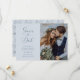 Announce your special day with the Dusty Blue Floral Save the Date. This horizontal card features a dusty blue background adorned with delicate vintage flowers and includes space for a personal photo. Combining timeless elegance with a personal touch, it sets the stage for a refined and sophisticated wedding celebration, exciting your guests for what's to come.