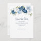 Elegant floral watercolor dusty blue, white, and navy floral bouquet wedding save the date card. The card features a script "Save the Date", that can be changed to a font type of your choice that are available here when you click the "Personalize" button.
