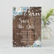Set the tone for your dreamy celebration with this elegant rustic dusty blue floral Save the Date wedding card! Featuring soft dusty blue and white rose arrangements, delicate fern greenery, dreamy layered string lights, and beautiful heart script on a rich warm dark wood background. A romantic and sophisticated design perfect for spring, summer, and winter country weddings, barn ceremonies, and any intimate gathering with a cool and elegant blue palette!