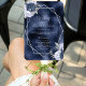 Dusty Blue Floral Silver Navy Foil Wedding Program Hand Fan