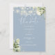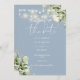 This elegant dusty blue greenery floral string lights save-the-date invitation can be personalized with your information in chic typography with your wedding website QR code and details on the reverse. Designed by Thisisnotme©
