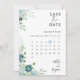 Wedding Save the Date card designed with dusty blue floral, minimalistic text font and caligraphy names.