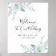 A lovely design with painted watercolor dusty blue flowers and elegant black script. The text and colors on this wedding sign poster can be edited.