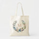 Watercolor floral wreath in chic dusty blue and neutral monogram tote bag. Personalize text, font style, color and size.