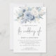 Dusty Blue Florals 3 Photos QR Code Wedding Invitation