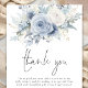 Dusty Blue Florals Baby Shower Thank You. Available digitally and printed. Elegant florals in summery light blue and white, flow down from the top. Thank You is in a set handwriting style script. Easily personalise the rest of the text to your own details.