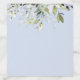 This design features dusty blue florals and eucalyptus leaves in shades of green.