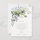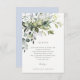 This design features dusty blue florals and eucalyptus leaves in shades of green.