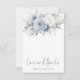 Dusty Blue Florals Photo Love Thanks Wedding. Beautiful summery light blue and white flowers decorate the top, and Love and Thanks is in a set informal handwritten style. With lots of white space in between for you to hand write your message. Easily personalize your names.